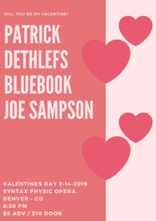Will you be my Valentine? Patrick Dethlefs, Bluebook & Joe Sampson at Syntax Physic Opera.