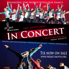 Project Moves Dance Company presents In Concert, its final performance of the season, Friday, August 9 at 7:30 p.m. at the Rondileau Campus Center Auditorium at Bridgewater State University. This performance presents new works by the company as well as a special performance featuring students of The Gold School's Mind Body Soul summer program.