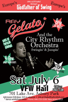 Ray Gelato returns to the USA for this fabulously fun dance party in Asbury Park on Saturday July 6th, 2013. Ray will be joined by the City Rhythm Orchestra and together they will be Jumpin' and Swingin'. Last year they performed for an enthusiastic dance crowd.