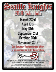 Enjoy dinner from The Restaurant at Rhodes River Ranch while experiencing the Seattle Knights! *Meal purchased separately at the event*