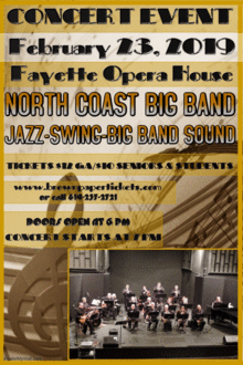 Join us for an evening of Jazz, Swing and Big Band Sound as we welcome the North Coast Big Band to the stage of the Fayette Opera House.