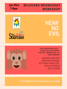 Bill will work you through exercises and handles that focus on listening. The L of LACE is part of our Staircase acronym. Listening is the key to a good improv scene and a great life skill to develop! Bill a Second City alumni,long time member of the Staircase Improv community and a career writer. He has a huge passion for improv and teaching with a wealth of knowledge to back him up. We are lucky to have him.