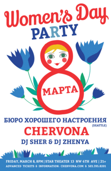 ADV GENERAL ADMISSION at $20 tickets can be purchased through Star Theater Portland web site: (coming soon) https://www.ticketweb.com/event/chervona-international-womens-star-theater-tickets/9148495?pl=star