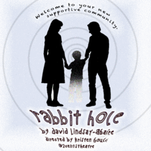 2Cents Theatre Group presents David Lindsay-Abaire's RABBIT HOLE directed by Kristen Boulé (Hollywood Fringe 2018 Award Winner Best in Immersive Theatre- Unreal City, 2Cents Loose Change; Robby Award Winner Best Director- Psychosical, 2Cents Theatre; Robby Award nominee Best director- Fugitive Songs, 2Cents Theatre; NAACP Award nominee Best Director- RENT, Hudson Theatres) 2Cents Theatre kicks off their 2019 site-specific season with David Lindsay-Abaire's stunning journey through grief, the search for comfort, and the rebirth of hope. This site-specific production puts audiences in a grief therapy setting at Lake Street Community Center where they will experience our family's journey from the round.