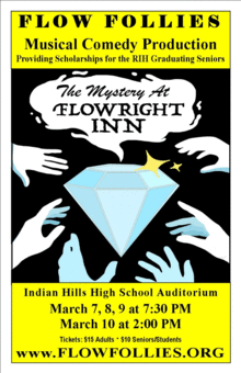 FLOW Follies, is pleased to present its' 33rd annual original musical comedy variety show and fundraising event, The Mystery at The FLOWRIGHT Inn". This years fundraiser presentation is a fun filled mélange of comedy, song and dance along with 50/50 raffles, an array of basket auctions, mini-scholarship drawing for RIH senior students and Munchies & Matinee luncheon special for senior citizens, all an effort to raise scholarship funds for the 2019 Ramapo and Indian Hills district graduating seniors.