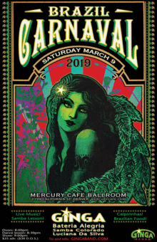 Celebrate Brazilian Carnaval GINGA style at the lovely Mercury Ballroom. Featured guests will be the booming Bateria Alegria percussion ensemble, extraordinary samba dancer Luciana Da Silva, and special performance by Samba Colorado dance company.