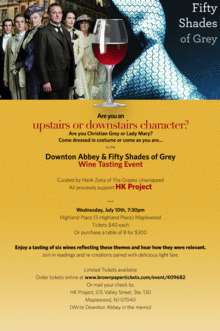 Enjoy a tasting of six wines reflecting these themes and hear how they were relevant. Join in readings and re-creations paired with delicious light fare.