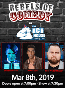 It's Rebels of Comedy at the IceHouse in Pasadena. Come out and see a night of live comedy, featuring an awesome lineup of professional features and headliner comedians.