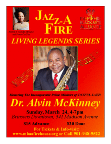 Come Join Us on Sunday, March 24, 2019 as we welcome and honor the Magnificent Dr. Alvin McKinney at Memphis Black Arts Alliances Jazz-A-F!RE, beginning at 4pm, at Brinsons Restaurant & Lounge Downtown, 341 Madison Avenue! For Information and Tickets, call, 901-948-9522 or visit our website at www.mbaafirehouse.org. Dont Miss It Get Your Tickets Today!