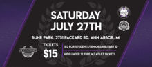 SAVE THE DATE! Ann Arbor Roller Derby's 2019 Home Season continues on Saturday, July 27th! We're bringing you two full-length games of flat-track roller derby, complete with concessions, merch, and more summer fun!