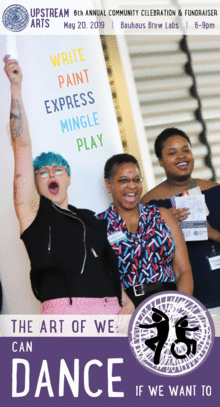 + Interactive Drop-In Class with our Teaching Artists + Favorite Upstream Arts Activities: Paint the Music and Collaborative Poetry Writing + The chance to win fabulous prizes at the Emotion Statue Wall + A game of Heads or Tails + Ways to support Upstream Arts work through a Fund-a-Need + Hors d'oeuvres, cash bar, and more