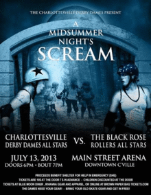 Come see the the Charlottesville Derby Dames' All-Stars take on Hanover, PA's Black Rose Rollers. This is roller derby at its best. Family friendly fun for all!