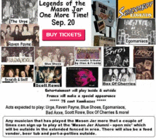 Tickets available at the door! Legends of the Mason Jar - One More Time...Sep 20