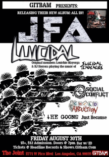 JFA Cd Release Show! With Luicidal, Social Conflict, Child Abduction & The Goons