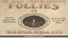 Debut Theatre Company presents the 2019 Spring Cabaret, Follies. Our spring cabaret fundraiser features some favorites from Old Broadway along with more recent selections. We will have raffle baskets and silent auction items available, including tickets to some Broadway hits like Dear Evan Hansen, Wicked and Hamilton. All of the money earned at the cabaret is used to fund our 2019 main stage, Acting Against Cancer production. Specialty concessions will be available as part of our refreshments.