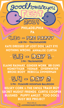 IT'S HERE!! good how are you and Paper Scissors Media once again present our annual South Philadelphia DIY Festival Extravaganza "goodhowareyou FEST 2019" at Tralfamadore and Pleasure Mountain Ballroom! Whip out those calendars and save the date, folks. This is gonna be way too good to miss.