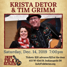 SOLD OUT! Tim Grimm and Krista Detor, Indy Folk Series, 2019 Winter Holiday show