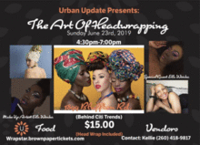 Learn 10+ ways to wear a head wrap We will discuss the history of head wrapping Special Guest Make Up Artist Ella Wonka Will do a tutorial along with a question and answer session Food and Refreshments will be provided Vendors with various items for purchase Jay Mars will have Chair Massages Available Prizes, Games and More.... Sunday June 23rd 4:30pm-7:00pm $15.00 includes your Head Wrap Grab your girlfriends