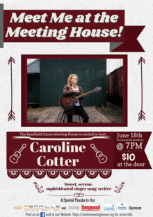 The Readfield Union Meeting House is excited to host Caroline Cotter. This world traveling singer songwriter is sure to bring great music and an exciting atmosphere June 18th at 7pm.