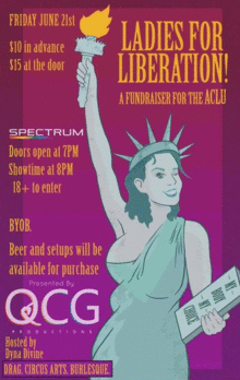Join us for a night of ladies, libations and liberation as we raise funds for the American Civil Liberties Union. With the laws passing in Alabama, Georgia and Ohio, we can see the writing on the wall, and NOW is the time to stand up and FIGHT! Come enjoy a night of burlesque, drag and circus arts, all while raising money for a great cause!