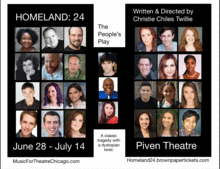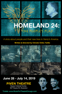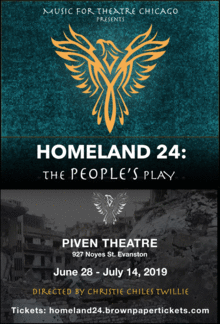 Homeland 24: The People's Play opens June 28th at Piven Theatre in Evanston. Seating is general admission in this intimate black box theatre. Tickets go on sale May 25th! Buy early before this relevant story sells out! ------------------------------------------------------------------------------------------ The producer has issued several TRIGGER WARNINGS for language, violence and a scenarios that IMPLY sexual violence, drug use and fatalities from a firearms. Performances are not appropriate for young audiences.It recommended for audience goers who are 15+ years of age.