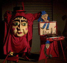 A magical masked creature (The Red Macanuda) is the caretaker of journeys. She operates a suitcase on legs connected to a large antenna, communicating with other creatures in her world. Her story is one of compassion in troubling times.