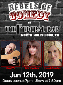 It's Rebels of Comedy at the Federal Bar in North Hollywood. Come out and see a night of live comedy, featuring an awesome lineup of professional features and headliner comedians.