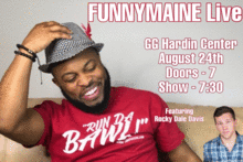 FunnyMaine will be performing live in Brookwood, AL at the G.G Hardin Center. This show will sell out in pre sale don't miss out!