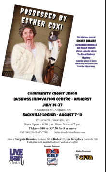 Grandma has just bought a house in Amherst, NS, and now shes possessed by Esther Cox. This hilarious musical dinner theatre offers a comedic take on The Great Amherst Mystery featuring a host of wacky characters and classic hits from the 50s to today.