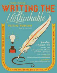 This is the first WRITING THE UNTHINKABLE workshop taught by Amy Probst, who learned the method from Lynda Barry; both feel HUGELY compelled to spread the word and not bogart the magic. Lynda teaches a specific way of working that she learned from HER teacher, Marilyn Frasca, in the late 1970s, and has used ever since. In this workshop, you will learn it from Amy, who is happiest when she's helping people recognize their own kickassness.