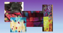 Covering basic silk dying, color mixing, texturing, resists (wax/Resistad) steam setting, microwave setting.
