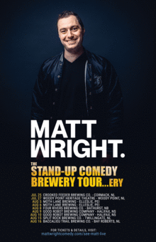 Catch Newfoundland's own Matt Wright at Baccalieu Trail Brewing Co. on Friday August 16th as part of The Stand-Up Comedy Brewery Tour...ery.