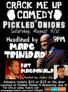 Crack Me Up Comedy presents MARC TRINIDAD with PAT MACDONALD. Hosted by Azfar Ali