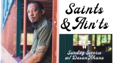 On Sunday, August 18th, Dasan Ahanu will present, Saints & Aints a Sunday Service at NorthStar Church of the Arts that will preview works from his forthcoming book of poetry, A Month of Sundays.