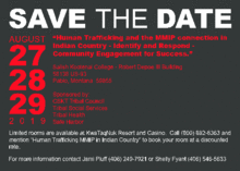 The three days will be facilitated by Jeri Moomaw, Executive Director, Innovations Human Trafficking Collaborative. There will be an Overview of Human Trafficking in Tribal communities (including urban areas), Indicators of sex trafficking, Strategies for a coordinated response protocol, Increased vulnerabilities and how it connects to MMIP, Group discussions, Community focused action planning and next steps for success.