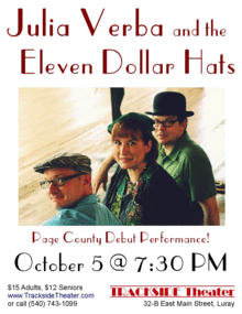 Join Julia Verba and the Eleven Dollar Hats (George DuPuy & Marc Benson) in their Page County debut!