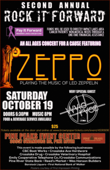 The Second Annual Rock It Forward Concert featuring Zeppo, playing the music of Led Zeppelin, with special guests, Lakes Area favorite Wyld Ryce, to benefit the Brainerd Lakes Pay It Forward Fund.