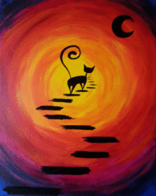 Join us at Round Table Pizza in Los Banos for a night of painting that the whole family will enjoy! Let's all get in the Halloween mood by painting this spooky cat! Where is it going? Where did those stairs come from and where do they go? That is for you to decide, the only limit is your imagination...and the colors provided! We will bring everything else you need to complete your masterpiece as well and Round Table Pizza is giving each painter a FREE pizza buffet! That's right, all you can eat pizza and painting for the whole family! See you at Round Table!