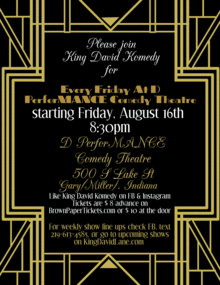 The First Friday of the month we put together a great line up of stand up comedy and/or improv. This month's comedy show features a stacked line up of Chicago/NWI/Michiana talent! Kenyon Adamcik, Patrick K Bolduc, Robert L. Strawsma, Mistaa Brown, KC, Comedian Rome Anthony! $8 in advance or $10 at the door. Doors open at 8:00! Show starts at 8:30. Music playing before & after the show. *If your birthday is this week you get in free if you present your state ID at the door. Free King's Comedy/Entertainment Open Mic every Wednesday night same time, same location!