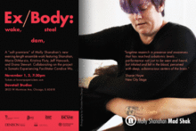 Molly Shanahan/Mad Shak presents the soft-premiere of Shanahans new dance project Ex/Body: wake, dam, steel. An evening-length ensemble work, Ex/Body features performances by Shanahan, and Chicago dancers Maria DiMarzio, Kristina Fluty, Jeff Hancock, and the ensembles newest member Diana Stewart. Collaborating on the project is Somatic Experiencing practitioner and healer Candice Wu.
