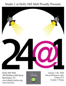 Studio 1 presents 24@1...The concept of this production is that high school students have 24 hours to rehearse and organize a production for their audience. We hope you will join us for this wonderful evening of short plays and you will be amazed with their performances!