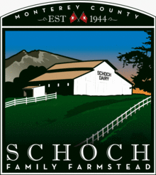 About Schoch Family Farmstead: Today, Schoch Dairy is one of only a few family dairies remaining in Monterey County. Milking less than 80 purebred Holstein cows, the Schoch family have held true to their commitment to quality over quantity. John Schoch, 2nd generation dairyman, literally takes a hands-on approach to running his business while doing most of the milkings himself. While producing artisan quality farmstead dairy products, John Schoch and his 3 sons have also been focused on maintaining their legacy of land stewardship. They have been actively involved with the Natural Resources Conservation Service, the Resource Conservation District of Monterey County, and the Community Alliance of Family Farmers. Recent projects have included native hedgerow plantings, riparian habitat restoration, wastewater collection and reuse, composting, erosion control, nutrient management practices, improved pasture management and rotational grazing, just to name a few.