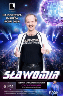 Cze, tu Sawomir! Twórca, wokalista, wizjoner, aktor. Kreator nowego gatunku muzycznego Rock Polo, czyli poczenia muzyki tanecznej ze szlachetnym rockowym brzmieniem. Osobowo telewizyjna, prowadzi cykle w programach: Pytanie na niadanie TVP2, Fura Gwiazd w Dzie Dobry TVN oraz lska Karuzela dla TVS. W jego teledyskach wystpuj najwiksze gwiazdy. Magorzata Socha, Ewa Kasprzyk, Krzysztof Kiersznowski, Lech Dyblik, Witold Dbicki oraz legendarna Grupa Vox. Po raz pierwszy synne ju przywitanie "Cze, tu Sawomir" moglimy usysze 24 lutego 2014 roku, kiedy to w sieci, na oficjalnym kanale artysty pojawi si pierwszy film z jego udziaem. W zaledwie trzy miesice od premiery Megiery, Sawomir zosta zaproszony na Sopot Hit Festiwal, gdzie wystpi jako gwiazda. Narodziny nowej muzycznej legendy z zapartym tchem oglday tysice ludzi w Operze Lenej oraz miliony widzów przed telewizorami. Mimo pónej pory, artysta Rock Polo poderwa cay amfiteatr. Jego sia estradowa bya niepodwaalna. W cigu nastpnych dwóch dni posypay si propozycje z Dancing with the Stars, programu Twoja Twarz Brzmi Znajomo oraz najwikszych wytwórni muzycznych. Dzi stoj za nim dziesitki tysicy fanów uwielbiajcych jego niebanalne poczucie humoru oraz znakomity gos. Cechy, którymi otworzy sobie drzwi do wielkiej kariery. Jego album The Greatest Hits ju w preorderze sta si bestellerem sieci Empik, obecnie ma ju status Podwójnej Platynowej pyty, a piosenka Mio w Zakopanem staa si najczciej ogldanym clipem na YouTube w Polsce. Jej obecny wynik to ponad 198 mln odtworze, co oznacza, e jest to najpopularniejsza polska piosenka w historii polskiego YouTube. Album zawiera 11 dopieszczonych rock-polowych kawaków porywajcych nogi do taca i wywoujcych umiech na twarzy. Ale i nie tylko! Na krku znalazy si utwory, których nie powstydziby si aden wielki artysta. Utwory przywoujce wspomnienia, wprowadzajce w stan zamylenia, nostalgii, utwory z dusz! Z prawdziw dusz od prawdziwego artysty. Przed Sawomirem wystpi gwiazda muzyki dyskotekowej: KASPII. Bdcie z nami! To bdzie najgortszy koncert roku 2019!