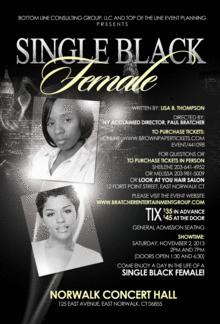The play takes a comic look at the pleasures and perils of being a single middle class black woman who's got everything she wants and needs except more R-E-S-P-E-C-T -- and a man! The play mines topics such as dating (on the Internet and the old-fashioned way!), gynecology, family gatherings, shopping, racial bias, white folks and, poignantly, the odd sense of loss a black woman feels when she does find a man and leaves her single sisters behind.