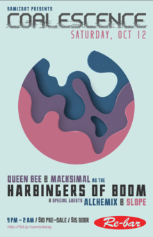 Harbingers of Boom United by their mutual love for mischief and polyrhythmic bass music, Queen Bee and Macksimal have teamed up as the Harbingers of Boom. They'll be unveiling the fruits of their labor with a special two-hour tag-team set that will keep the floor poppin' in its traversal of the genre spectrum.