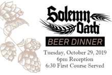 It's been a while but our Beer Dinners are back!!! Chef Kevin Hunter and the Wild Monk Culinary Team join together with Solemn Oath Brewing to bring you a menu filled with seasonal flavors and delicious beer.