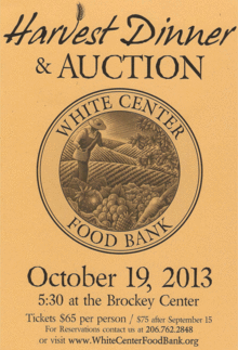 Enjoy Great Food and Entertainment while you participate in The "Harvest Dinner & Auction" to benefit the White Center Food Bank.