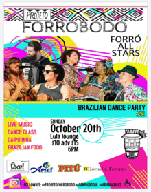 The band is formed by local musicians from the Brazilian community and beyond, coming together to perform at PROJETO FORRÓBODÓ. Inspired by traditional rhythms of the Northeastern of Brasil. Experience different facets of forró, its music and its culture. Enjoy a whole afternoon of forró music and culture. Get warm by dancing and tasting some Brazilian food by Tambor Soul Kitchen. Intro forró dance class with Aruá Brazilian dance will take place before the live show. Take advantage to interact, meet new people and dance the night away! So what are you waiting for? This is your new favorite monthly jam in Toronto!