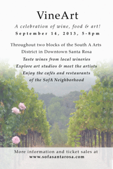 Enjoy wines from local wineries, taste foods from our neighborhood restaurants and cafes and experience the rich art of the 40 artists in these two blocks of downtown Santa Rosa. This is one of our most popular annual events in the neighborhood and is a celebration for the senses.