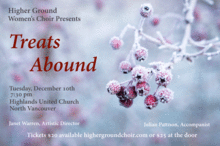 Join Higher Ground Women's Ensemble as we celebrate the season with a wonderful night of song. We will perform some traditional favourites as well as fresh and innovative repertoire.